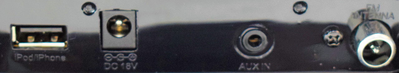- AUX IN: Eingang, 3,5 mm Klinkenstecker
